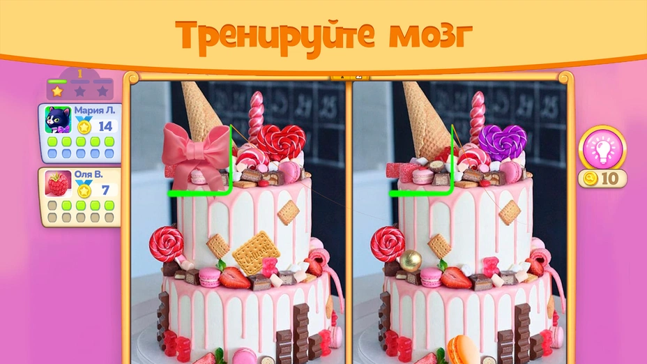 - 🧩 От 5 до 10 отличий — на каждом уровне нужно найти определённое количество различий. Можно выбрать комфортную сложность.